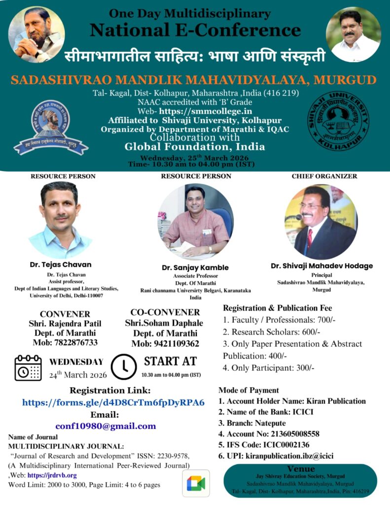 Sadashivrao Mandlik Mahavidyalaya is reputed as a developed college which is always engaged to achieve academic performance as well as socio-cultural development. It is always engaged in continuous.