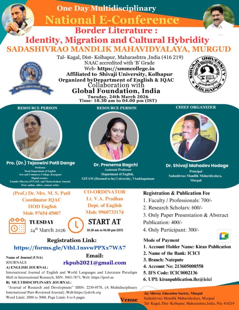 The Jay Shivray Education Society, Murgud founded Shivraj Vidyalaya, Murgud in 1960 and started imparting education to the students from hilly and rural area. As the years rolled on, the organization felt need for higher education. The New College of Arts and Commerce was established in 1990. The New College of Arts and Commerce, Murgud was re-entitled as ‘Sadashivrao Mandlik Mahavidyalaya, Murgud ‘ in 1995. The organization offered premises of 10.5 acre land to the college. The college was shifted in this premise on Teacher’s Day i.e. on 05/09/2002. Apart from the existing building, there is a separate library building. The college proposed to build a Ladies Hostel too.