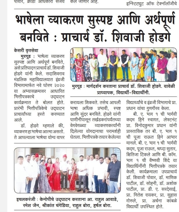 व्याकरण म्हणजे सर्व भाषेचा पाया : प्राचार्य डॉ. शिवाजी होडगे ; सदाशिवराव मंडलिक महाविद्यालयात भित्तीपत्रकाचे उद्घाटन
