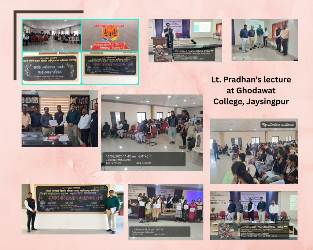 LT. PROF. VINODKUMAR PRADHAN, of the department was invited as Resource Person to deliver lecture on Communication Skills under Lead College Scheme at Smt. Gangabai Khivraj Ghodawat Arts and Commerce College, Jaysingpur Dist. Sangli on 13th February, 2026.