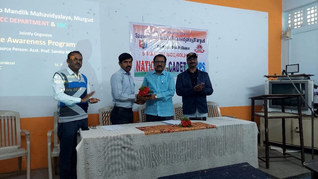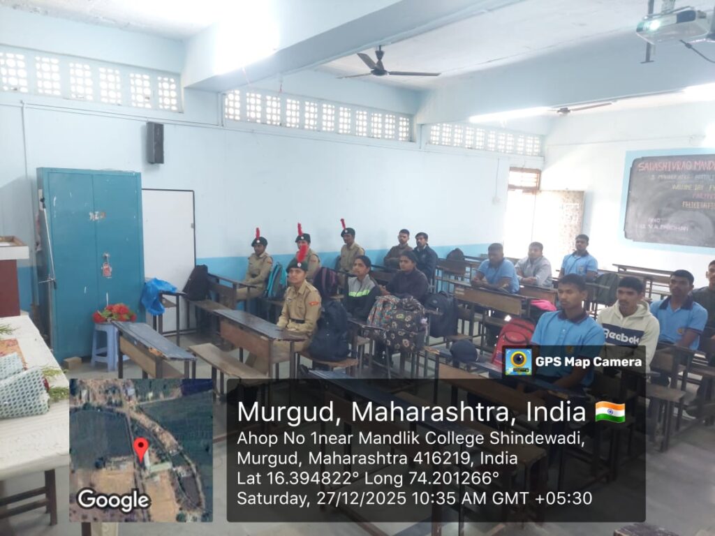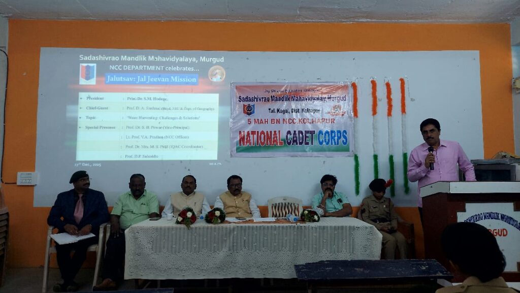 As per the circular issued by Directorate General NCC (DGNCC) to celebrate Jalutsav: Jal Jeevan Mission from 22nd to 28th December 2025, the Department of NCC of Sadashivrao Mandlik Mahavidyalaya, Murgud organized a special lecture on “Water Harvesting: Challenges and Solutions.”