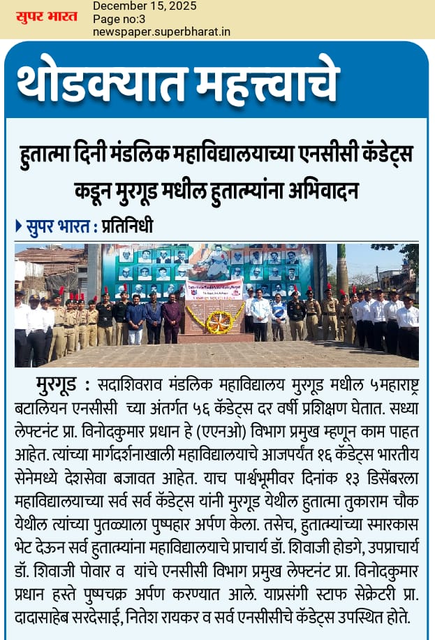 NCC CELEBRATED HUTATMA DIN BY PAYING HOMAGE TO LATE HUTATMA TUKARAM BHARMAL STATUE IN MURGUD