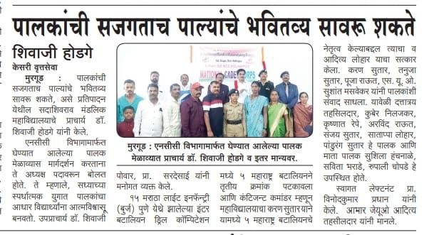 Guidance for the program was provided by Lieutenant Vinod Kumar Pradhan, Head of the NCC Department, along with Prof. Dadasaheb Sardesai, NSS Project Officer Prof. Deepak Salunkhe, and Vice Principal Dr. Shivaji Powar, who motivated the students and appreciated the efforts taken to organize the event. Prof. Suhas Gorule efficiently moderated the program and ensured its smooth conduct.