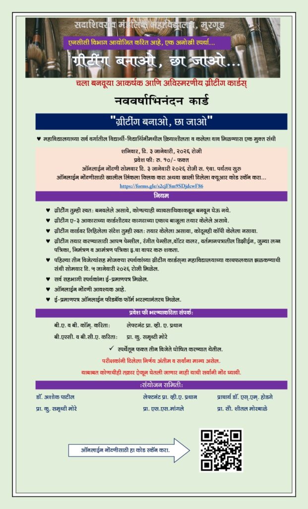 The National Cadet Corps (NCC) Department of the college successfully organised an innovative and eco-friendly creative competition titled “Greeting Banao, Chha Jao” on January 3, 2026. The activity witnessed enthusiastic participation from students of various departments, who showcased their creativity, imagination, and artistic skills through unique handmade greeting cards.