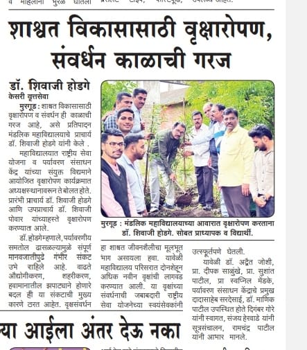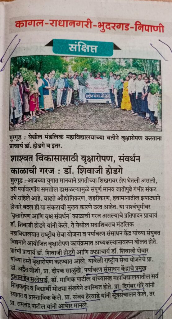 शाश्वत विकासासाठी वृक्षारोपण व संवर्धन काळाची गरज – प्राचार्य डॉ. शिवाजी होडगे मुरगूड