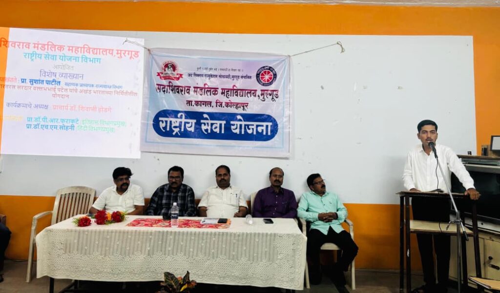 मुरगूड : “स्वातंत्र्यानंतर भारतासमोरील सर्वात मोठे आव्हान म्हणजे संस्थानांचे विलीनीकरण होते. त्यावेळी लोहपुरुष सरदार वल्लभभाई पटेल यांच्या प्रगल्भ, दूरदृष्टीपूर्ण व दृढ नेतृत्वामुळे जवळपास ५६५ संस्थाने भारतात विलीन झाली. त्यांच्या या ऐतिहासिक कार्यामुळे अखंड भारताचे स्वप्न साकार झाले” असे प्रतिपादन प्रा. सुशांत पाटील यांनी केले. ते सदाशिवराव मंडलिक महाविद्यालय,मुरगूड अंतर्गत राष्ट्रीय सेवा योजना विभागाच्या विशेष व्याख्यान प्रसंगी बोलत होते.