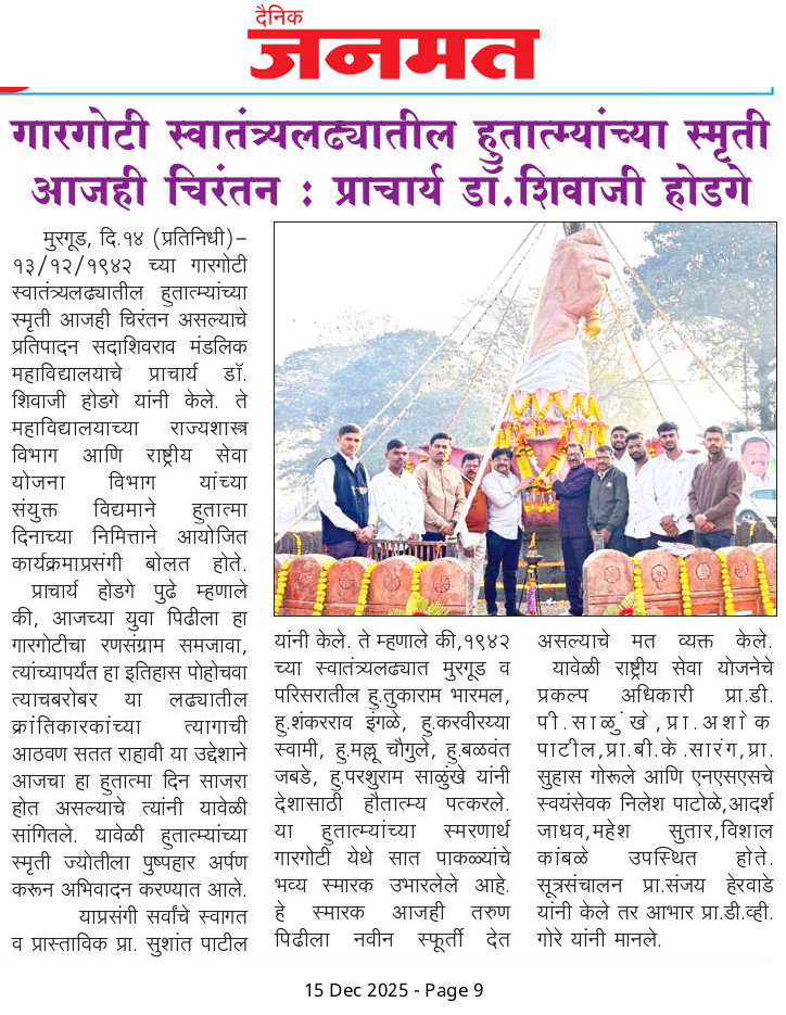 गारगोटी स्वातंत्र्यलढ्यातील हुतात्म्यांच्या स्मृती आजही चिरंतन – प्राचार्य डॉ. शिवाजी होडगे