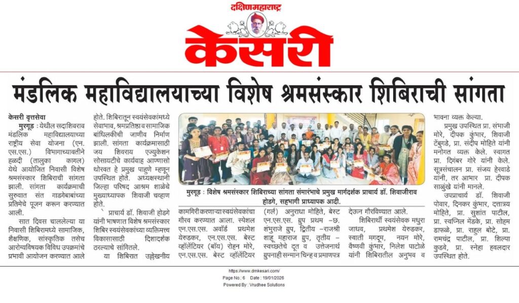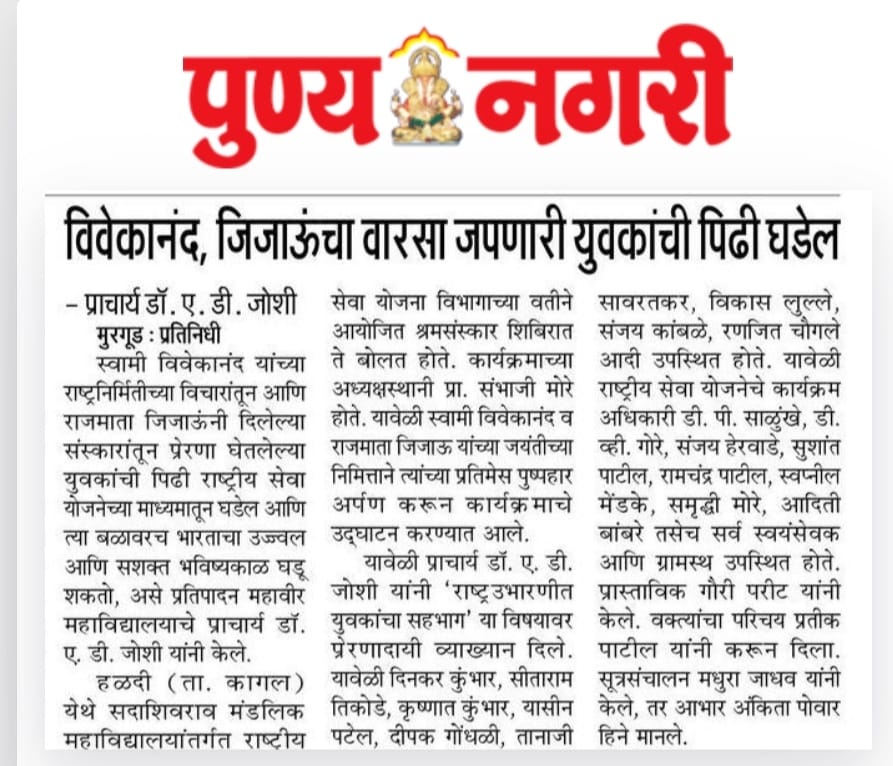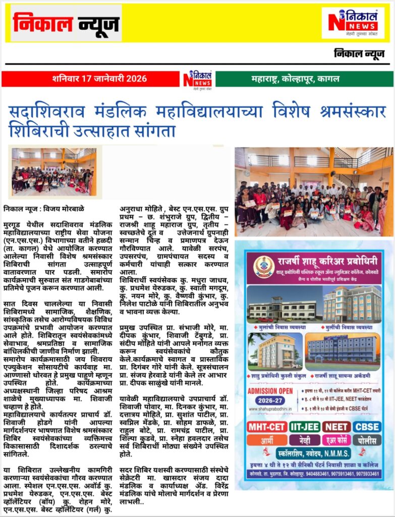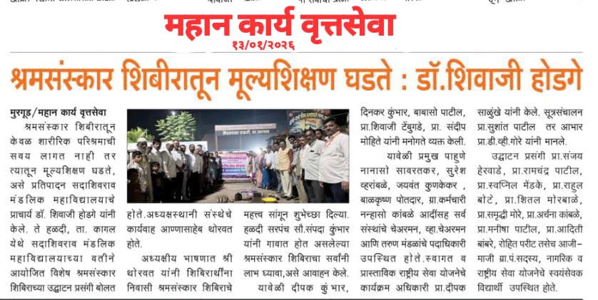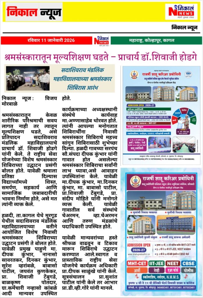सदाशिवराव मंडलिक महाविद्यालयाचे हळदी येथे श्रमसंस्कार शिबिर