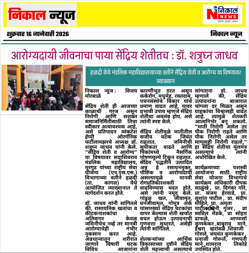 सूत्रसंचालन प्रा. सुशांत पाटील यांनी केले तर आभार प्रदर्शन प्रा. रामचंद्र पाटील यांनी मानले.
