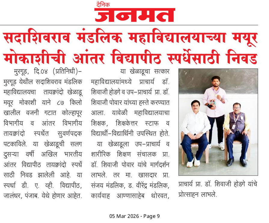 (प्रा. डॉ. शिवाजी पोवार) जिमखाना विभाग प्रमुख, सदाशिवराव मंडलिक महाविद्यालय, मुरगुड.