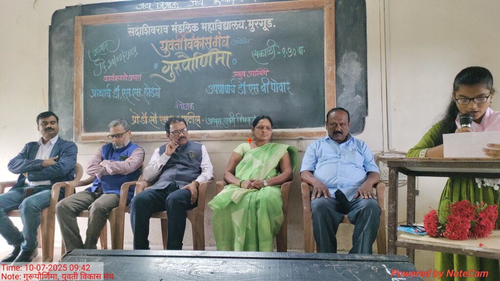 सदाशिवराव मंडलिक महाविद्यालय, मुरगुड मध्ये युवती विकास मंच द्वारा गुरुपौर्णिमा उत्साहा मध्ये पार पडली. कार्यक्रमाच्या प्रारंभी गुरूंना पुष्पगुच्छ देऊन वंदन करण्यात आले. यानंतर गुरूंबद्दल अनेक व्यक्तींनी आपली वक्तव्य वक्तवे सादर केली.
