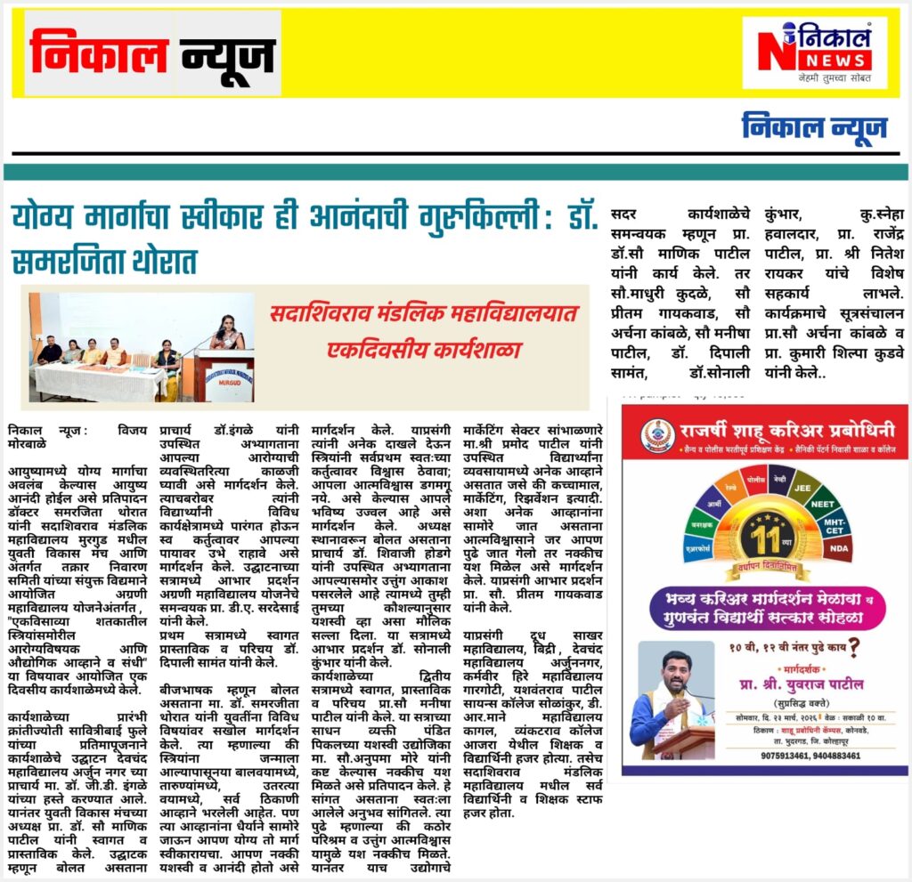 Yuvati Vikas Manch in Sadashivarao Mandlik Mahavidyalaya, Murgud celebrated World Women’s Day by organizing following programs in the college: